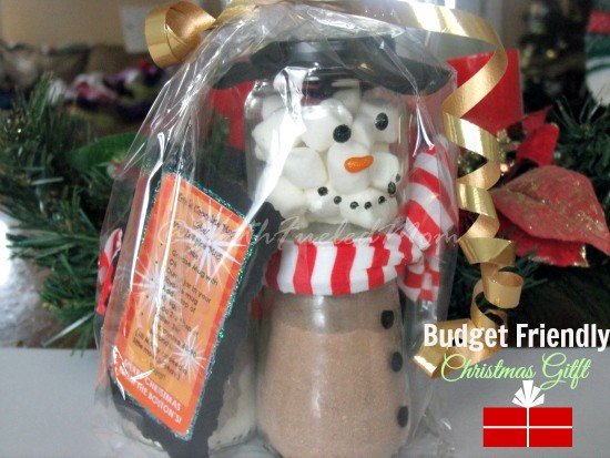 - Fill top jar with Marshmallows and bottom jar with hot chocolate and screw lids on to jars.